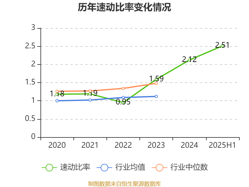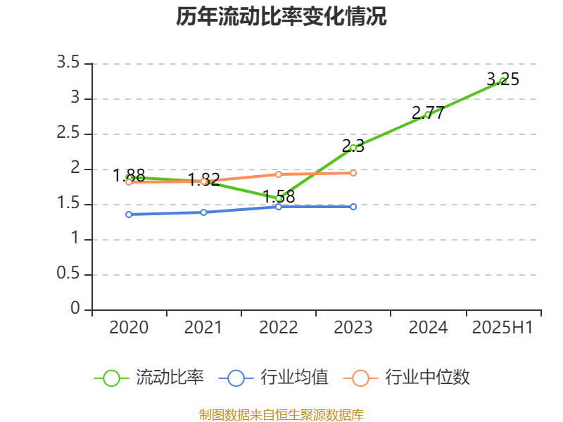 2025年上半年,公司流动比率为3.25,速动比率为2.51。