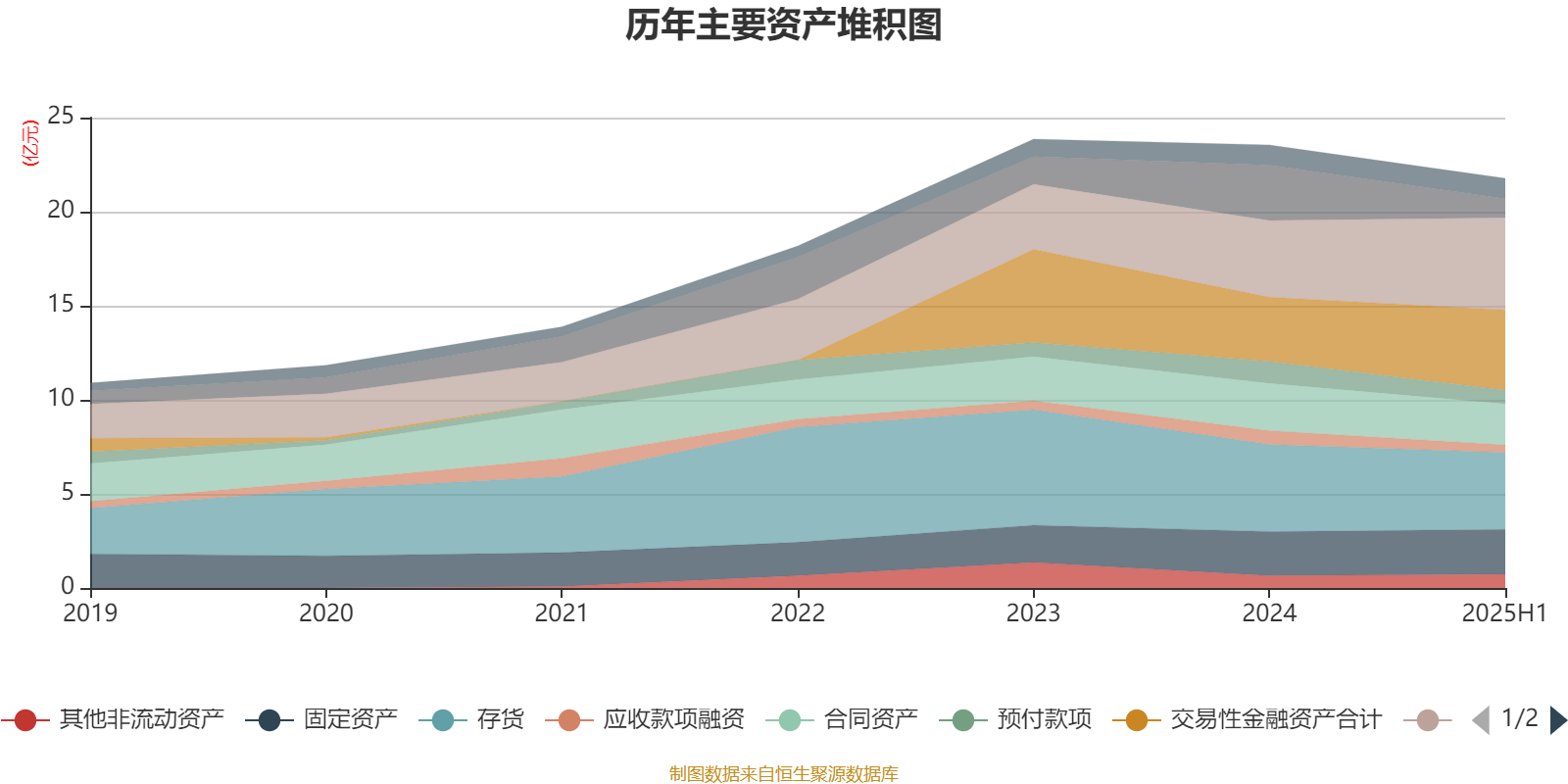 资产重大变化方面,截至2025年上半年,公司货币资金较上年末减少65.64%,占公司总资产比重下降7.87个百分点;应收票据及应收账款较上年末增加19.97%,占公司总资产比重上升5.15个百分点;交易性金融资产合计较上年末增加25.22%,占公司总资产比重上升5.13个百分点;预付款项较上年末减少37.58%,占公司总资产比重下降1.62个百分点。