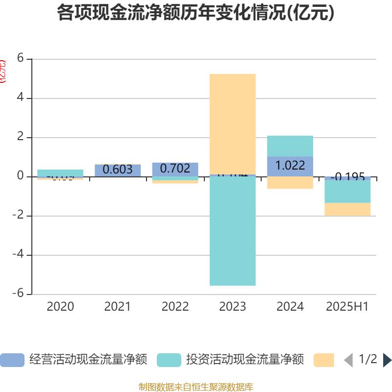 2025年上半年国荣配资,公司经营活动现金流净额为-1950.47万元,同比增加2731.99万元;筹资活动现金流净额-6519.37万元,同比减少219.14万元;投资活动现金流净额-1.16亿元,上年同期为1.32亿元。