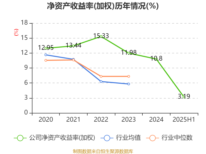 盈利能力方面, 2025年上半年公司加权平均净资产收益率为3.19%,同比下降2.98个百分点。公司2025年上半年投入资本回报率为3.18%,较上年同期下降3.06个百分点。