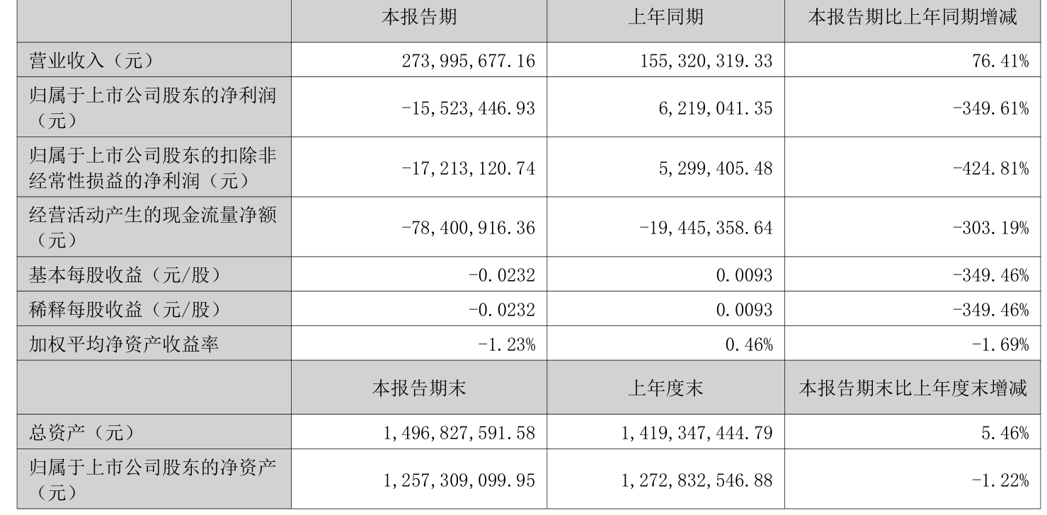 中证智能财讯浩云科技(300448)8月23日披露2025年半年度报告。2025年上半年,公司实现营业总收入2.74亿元,同比增长76.41%;归母净利润亏损1552.34万元,上年同期盈利621.9万元;扣非净利润亏损1721.31万元,上年同期盈利529.94万元;经营活动产生的现金流量净额为-7840.09万元,上年同期为-1944.54万元;报告期内,浩云科技基本每股收益为-0.0232元,加权平均净资产收益率为-1.23%。公司2025年半年度分配预案为:拟向全体股东每10股派现0.15元(含税)。