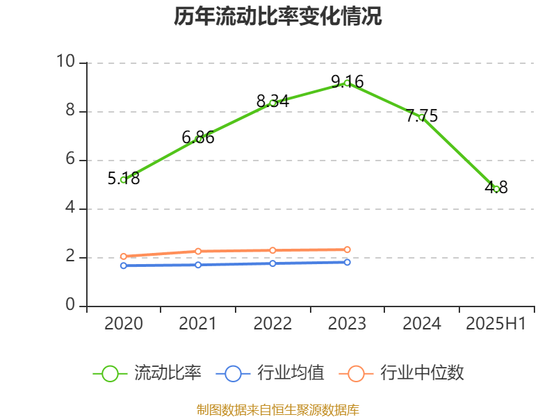 2025年上半年,公司流动比率为4.8,速动比率为4.48。